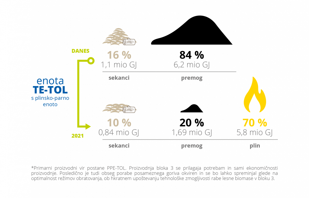 Izgradnja plinsko-parne enote predstavlja največjo energetsko-okoljsko naložbo Energetike Ljubljana doslej. Nadomestila bo dva najstarejša od sicer treh premogovnih blokov v enoti TE-TOL in omogočila 70-odstotno zmanjšanje uporabe premoga. Primarni energent za proizvodnjo toplote in elektrike bo tako postal zemeljski plin, premog pa se bo uporabljal le še v najmlajšem premogovnem bloku, v katerem uporabljamo tudi lesno biomaso.